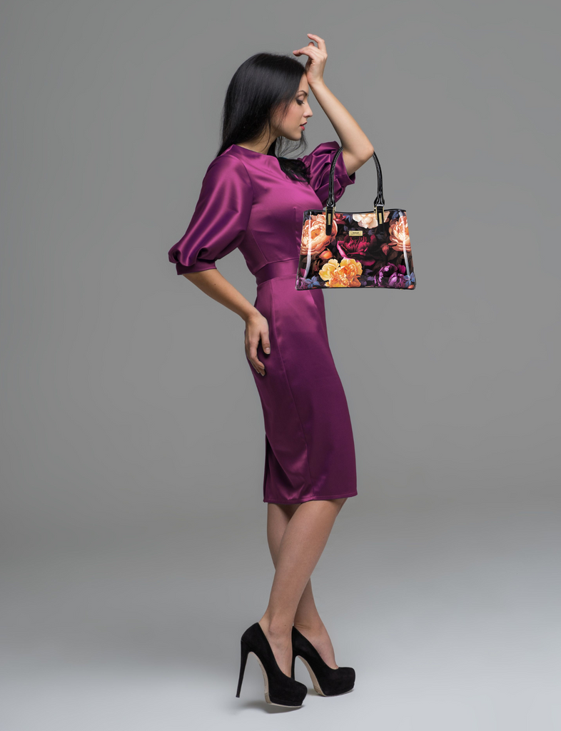 This Serenade Beverly Hills Collection, Harriet Grip top handbag is perfect for everyday. Crafted from premium patent leather with a stunning floral print which is complimented with Black patent leather handles and trim.